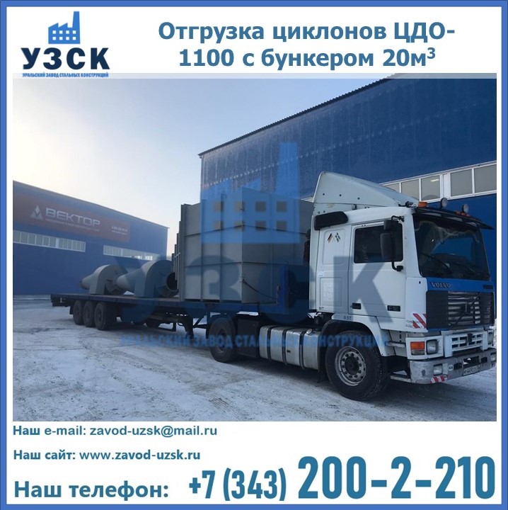 Циклоны ЦДО-1100 с бункером на 20 кубов были отгружены в декабре 2018 года в г. Новосибирск Ульяновск.