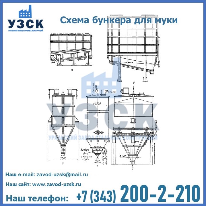 Завод «УЗСК» в Ульяновске проектирует, производит и поставляет целевое оборудование, в том числе, бункеры для хранения муки и прочих сыпучих материалов.