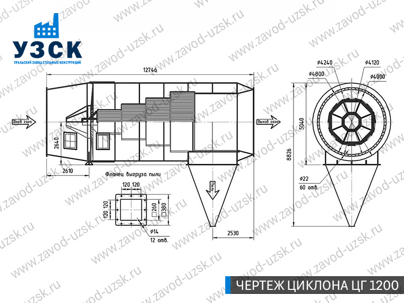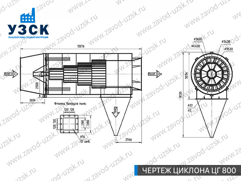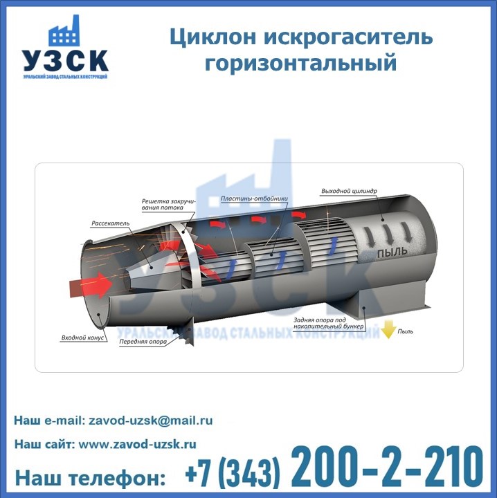 Горизонтальные циклоны-искрогасители ЦГ поставляются в Ульяновске в сборке или же транспортными единицами для последующей сборки, если предназначены для работы с большими объемами.