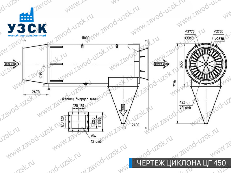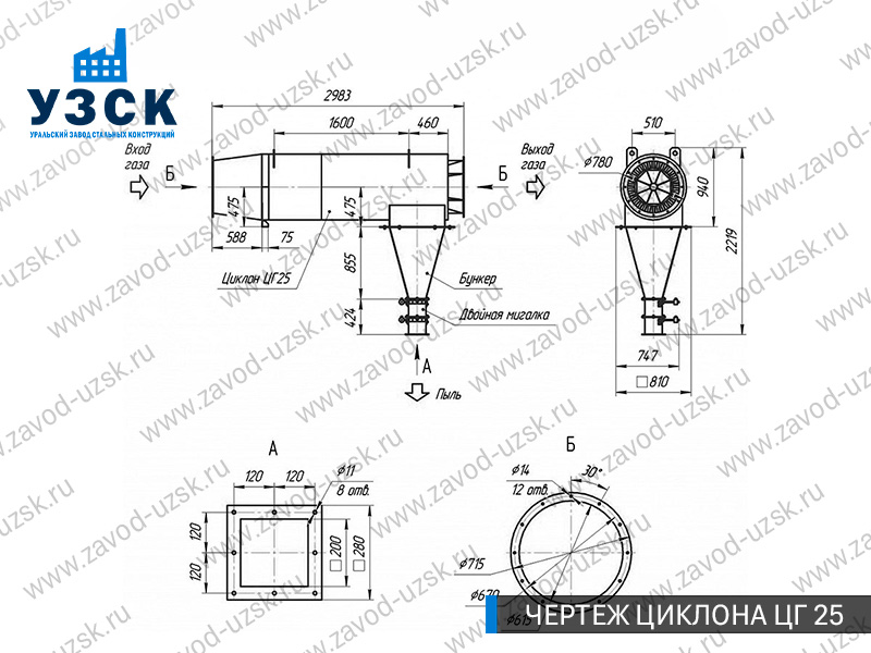Монтаж циклона-искрогасителя ЦГ должен осуществляться непосредственно к горизонтальному вентиляционному каналу на входе в систему фильтрации и аспирации. Заказать изготовление по индивидуальному техзаданию или купить готовый циклон-искрогаситель ЦГ на заводе УЗСК в Ульяновске можно, оставив заявку прямо на сайте или позвонив по указанному телефону, уточнив все детали касательно продажи оборудования.