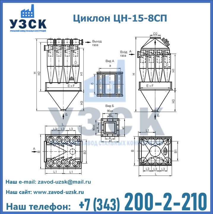 Завод «УЗСК» в Ульяновске предлагает большой выбор циклонов ЦН-15-500×8СП и прочих устройств, полностью укомплектованных и готовых к эксплуатации. Мы гарантируем соответствие оборудования всем требованиям ГОСТ и ТУ, износостойкость и высокую производительность предлагаемого оборудования. Уральский Завод Стальных Конструкций изготавливает и продает надежное, эффективное и производительное оборудование, имеющее длительную гарантию и большой эксплуатационный ресурс. Если требуется изготовить циклон нестандартных размеров, то такой вариант выполнения заказа тоже предусмотрен, так как предприятие имеет собственные производственные площади и надежных поставщиков. На все поставляемое или производимое оборудование имеются чертежи и прочая техническая документация. Заказать и купить циклоны или прочее оборудование высокого качества и по доступной цене можно через наш сайт или по указанному в разделе