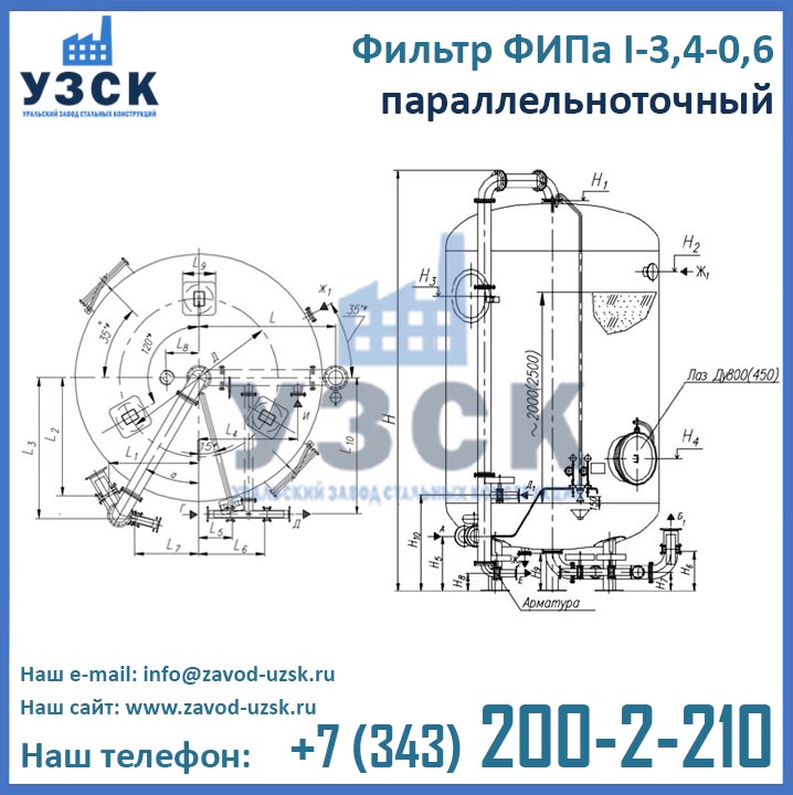 Производитель фильтров ФИПа параллельно-точных завод УЗСК предлагает два варианта комплектации ФИПаI 3,4-0,6 в Ульяновске: