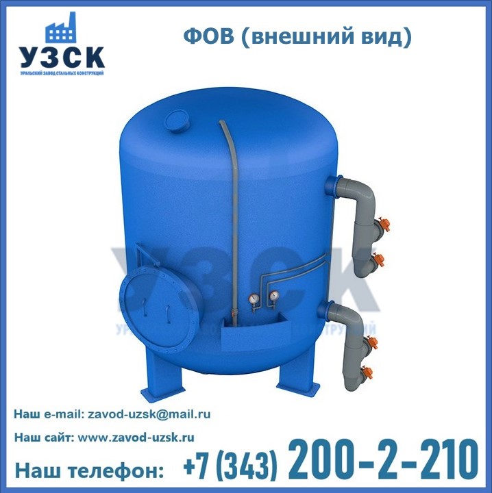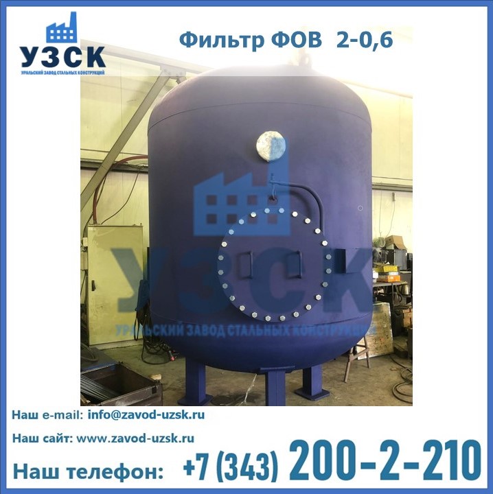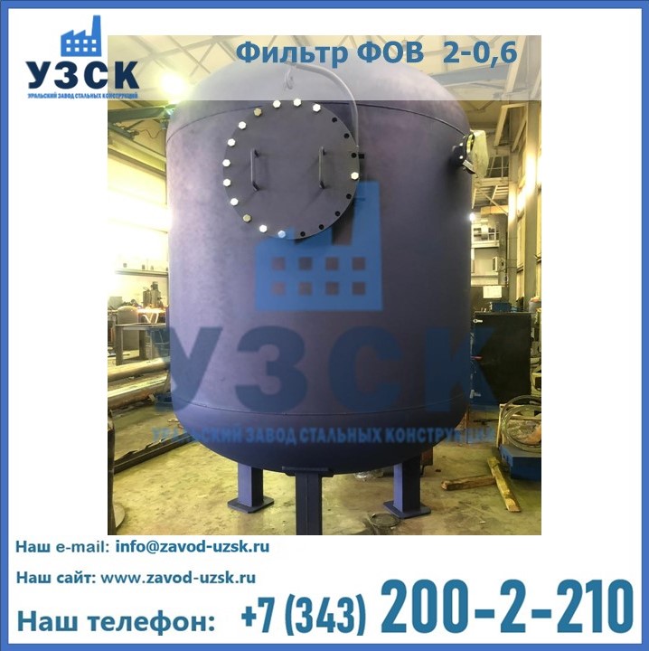 Удаление взвешенных веществ различного уровня дисперсности из рабочих жидкостей эффективно проводит фильтр осветлительный типа ФОВ (скорый или механический) — вертикально-цилиндрической формы установка, разработанная для систем водоподготовки различного класса. Оборудование представляет собой однокамерный агрегат для очистки воды рекомендованный для применения на станциях очистки стоков, в коммунальных котельных, на ТЭЦ, в промышленных отопительных системах и пр. Заказать производство ФОВ фильтров предлагает наш Уральский завод стальных конструкций в Ульяновске. У нас можно купить фильтрационное оборудование различного класса и типа, в том числе фильтры ФОВ из нержавеющей стали.