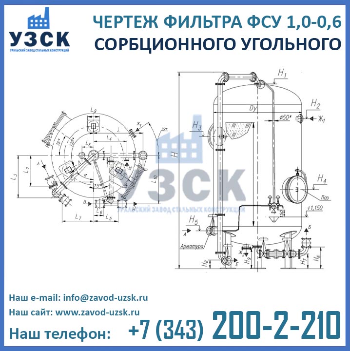 Наш завод (Уральский завод стальных конструкций) является производителем угольных фильтров, сам осуществляет изготовление и реализацию выпускаемой продукции. Приобретая фильтры ФСУ-1.0-0.6 в Ульяновске от производителя, Вы приобретаете оборудование без наценок всевозможных посредников, а также значительно экономите свое время. Фильтры ФСУ1.0-0.6 завода УЗСК – это гарантия качества, кратчайшие сроки изготовления и цена, которая Вам понравится.
