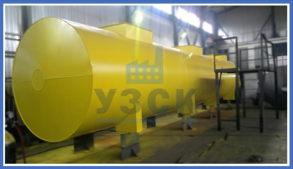 Все горизонтальные резервуары сходны по конструкции. Это цилиндрическая емкость, имеющая торцевые днища. Если днище плоское, емкость эксплуатируется при внутреннем давлении меньше 0,04 МПа (кгс/см2). Сферическое или конусное днище, позволяет поднимать рабочее давление до 0,06 МПа.